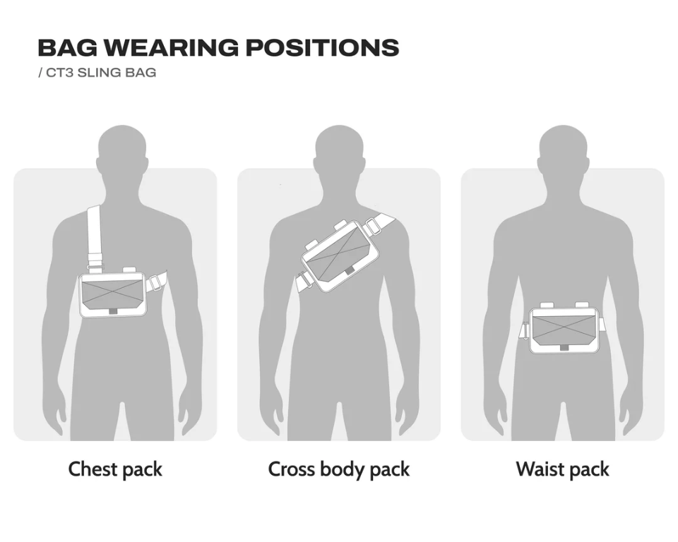 - Chest pack/Sling bag/Cross body pack/Waist pack.