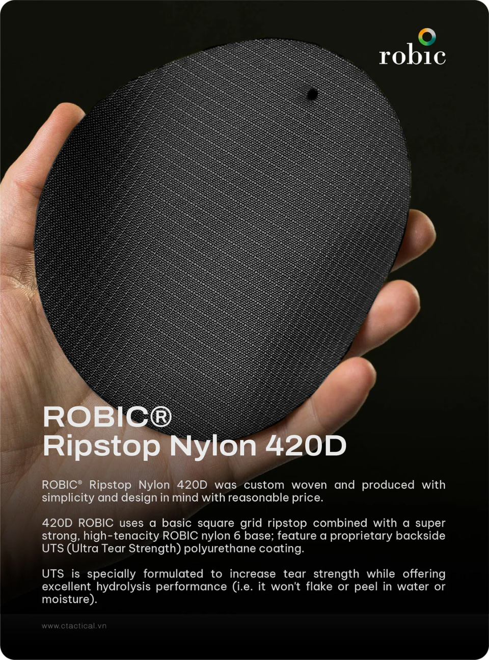 - Fabric: ROBIC® Nylon 420D Ripstop.