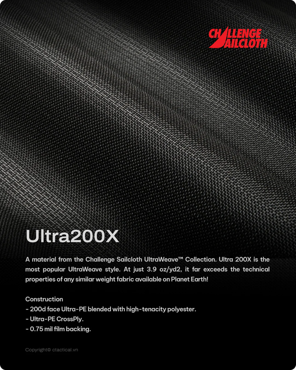 - Shell fabric: Challenge Sailcloth ULTRA200X.