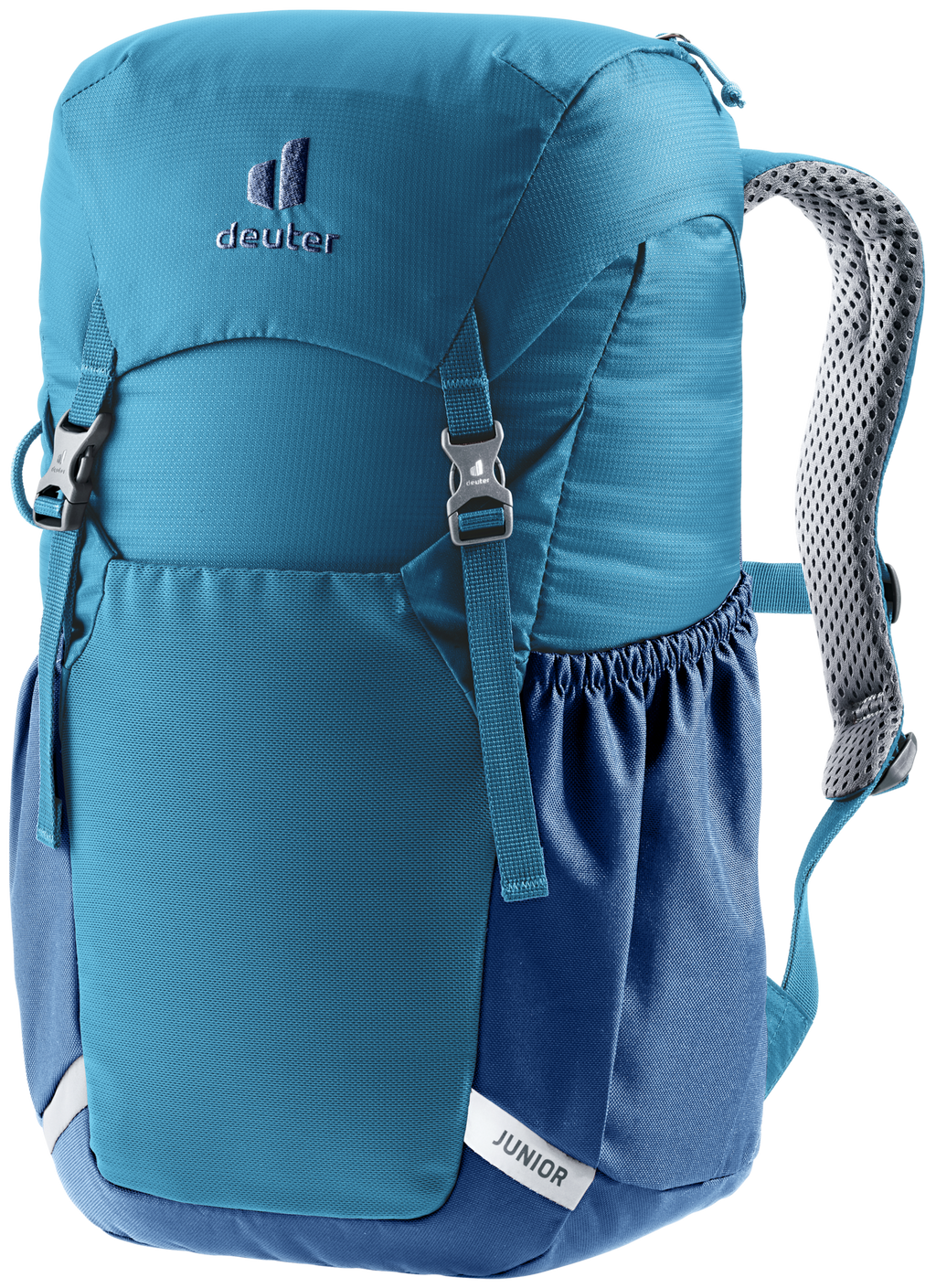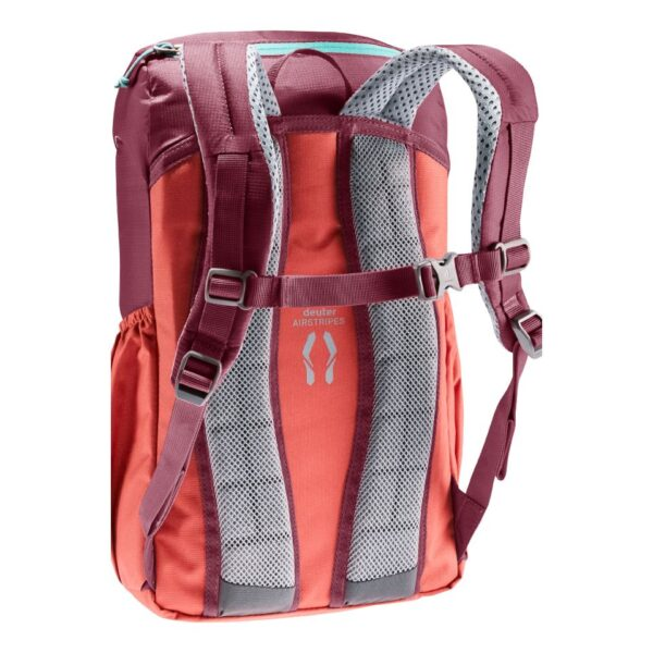 The Junior features deuter’s proven Airstripes back system for effective ventilation. The S-shaped shoulder straps with Soft-Edge finish make it comfortable to carry and the sternum strap keeps the pack securely in place, even when running hard. In addition to a spacious main compartment, it has a stretch stash pocket on the front and stretch side pockets for a whole host of items. The extra-tough, PFC-free recycled fabric (using 13 x 0.5-liter PET bottles for each pack) makes this Green Button-certified, bluesign® product a practical companion for all their explorations in the natural world.