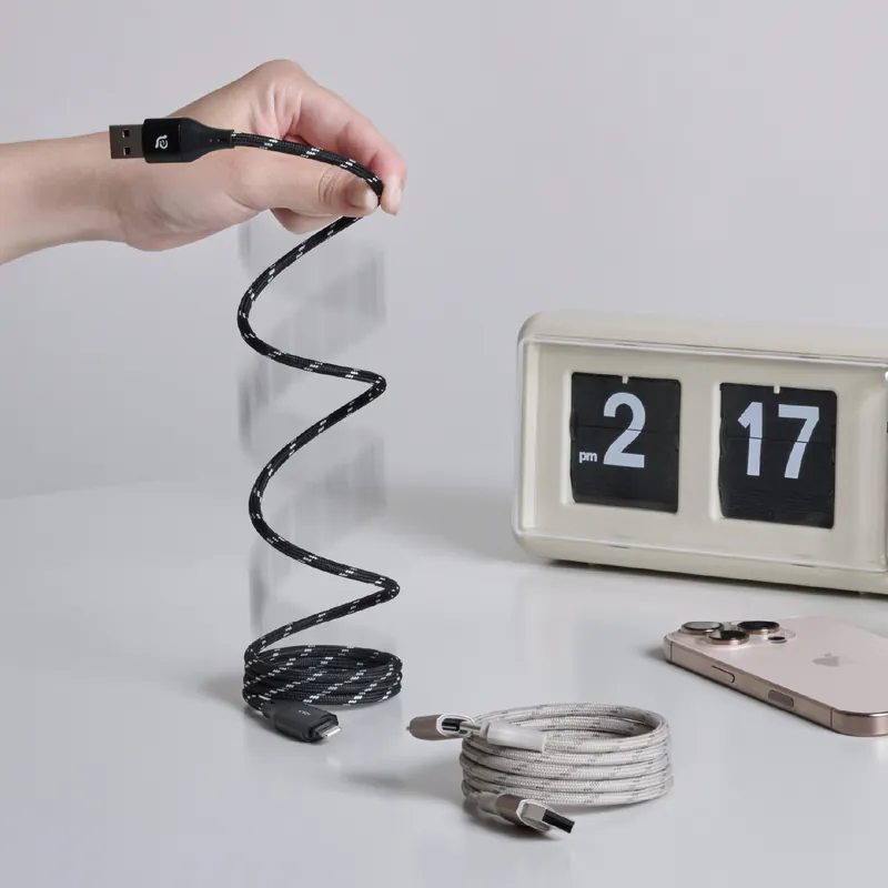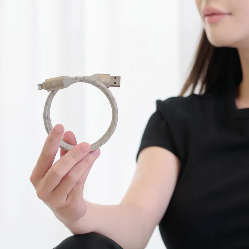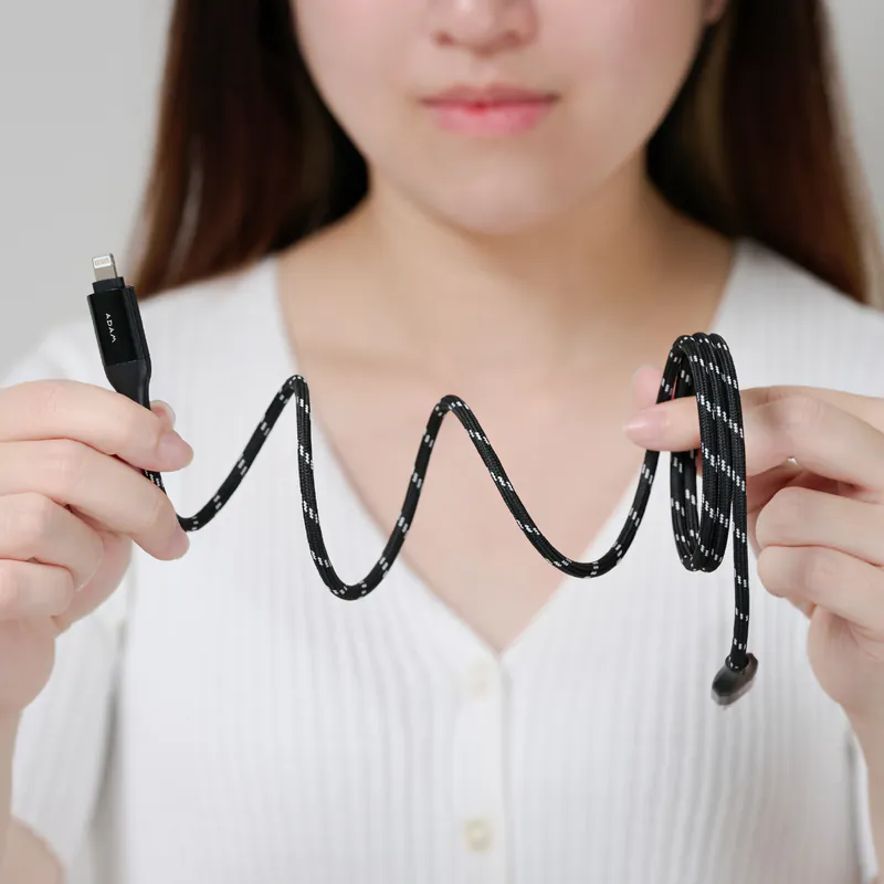 - Unique, flexible nylon braided cable that resists tangling and is highly durable.
