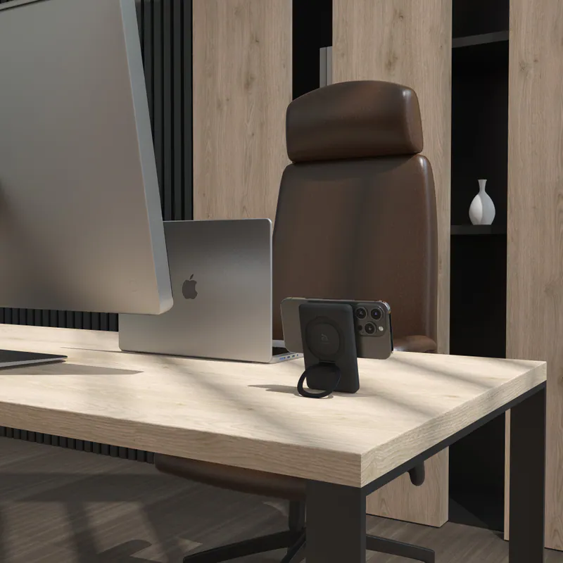 • Hidden stand design allows the power bank to charge while doubling as a phone stand