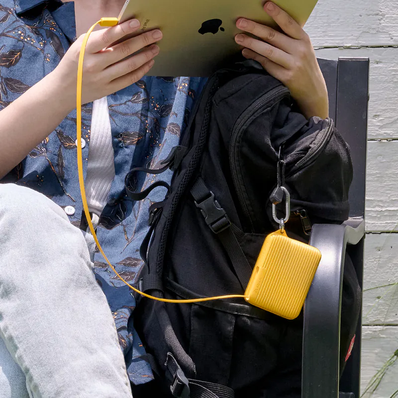 • Hidden retractable USB-C cable, extending up to 70cm, neatly stored within the power bank