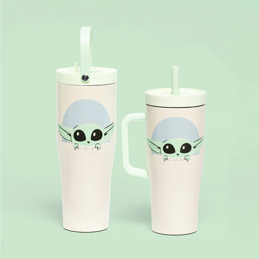 100% LEAKPROOF with a simple twist of the lid, 22oz Cruiser is designed to keep up with the pace of your daily hustle. So go ahead and toss it in your work bag with your laptop—not a drop will escape. Smaller and lighter than the original, the 22oz Cruiser keeps your iced coffee, smoothie, or seltzer cold for 20 hours. Featuring a soft silicone straw, comfort grip handle, and non-slip silicone base, it has all the features that make Corkcicle stand out above the others. Plus, it fits in most cupholders so it’s always along for the ride. The lid separates easily to clean, and it’s dishwasher safe. Now available in a pattern inspired by everyone's favorite, Grogu.