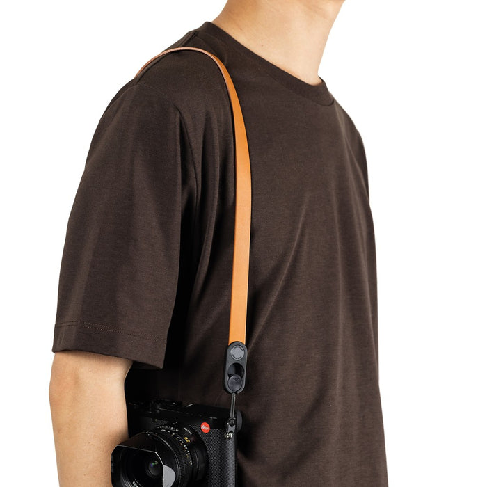 When we designed Form Leather, we set out to create a minimalist alternative to the bulky leather camera straps we're used to. Instead of loud off-the-shelf hardware, conspicuous stitching, and heavy-duty rivets that scream modern heritage, we gave Form Leather a streamlined form with low-profile integrated hardware for a timelessly clean look. A premium full-grain bovine leather strap* seamlessly terminates into low-profile Anchor Link quick-connectors. The connectors are a slimmed-down version of the same iconic connection system you'll find on all Peak Design straps, offering secure and effortless camera attachment. A sleek aluminum accessory loop lets you attach a spare Anchor, letting you stow your strap on your body when you remove your camera. On the underside, a custom sealed finish enables the leather to glide smoothly across your body, yet maintains enough grip to not slip off your shoulder. With 4 fixed-length sizes to choose from, any photographer can dial in a perfect fit and carry style.*We exclusively source leather that is gold-rated by the Leather Working Group, signifying adherence to the highest levels of environmental practices, encompassing water/energy consumption, chemical handling, air emissions, and hide traceability.
