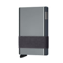 The Cardslide is a modular wallet consisting of a Cardprotector and a Slide, held together by a Moneyband. The patented mechanism allows you to slide out your cards with one simple motion, ready for immediate use.