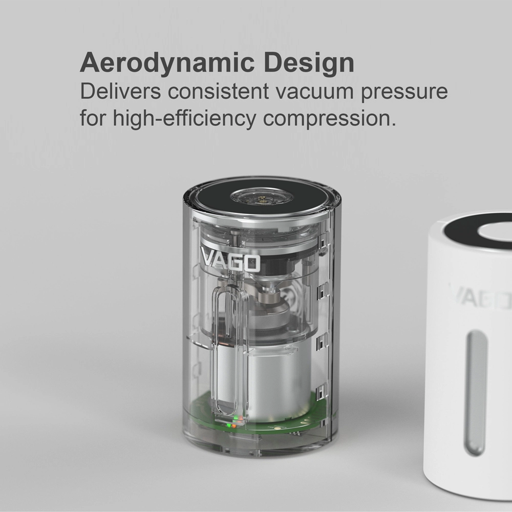 VAGO Z is a micro vacuum compressor designed for the billions of travelers in the world who are troubled by insufficient space in their luggage. It stands 5.5 cm tall and weighs only 55 grams. Despite its tiny size, it is fully automatic, and its strong suction pressure effectively compresses soft items, freeing up more space so you can bring souvenirs home to your loved ones. the design goal was to increase the available space in customers’ existing suitcases so that they don’t have to purchase a larger one, which wastes money and is bad for the environment. VAGO Z will change the way you travel.