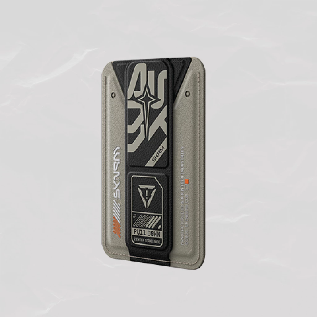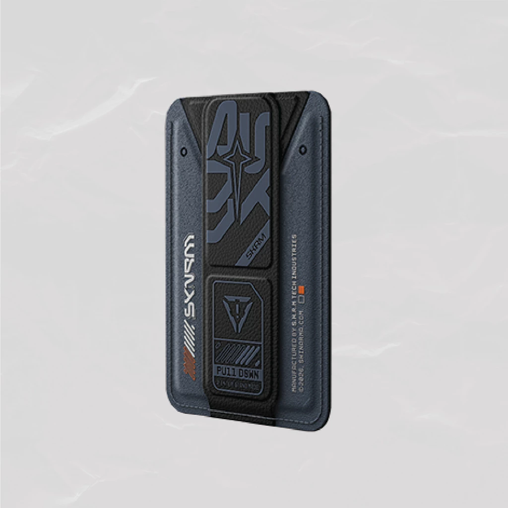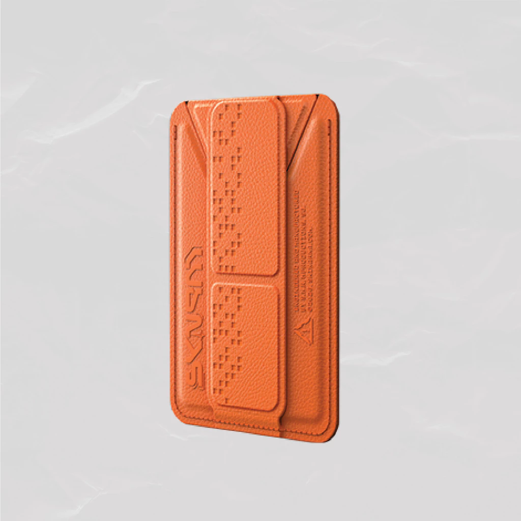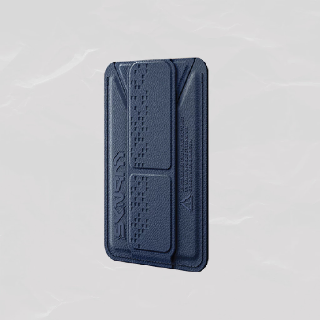 Magnetic card holder with a built-in grip stand for everyday convenience, PHANTOM-style. Carry your essentials, hold your device comfortably, and switch between portrait and landscape viewing with ease.